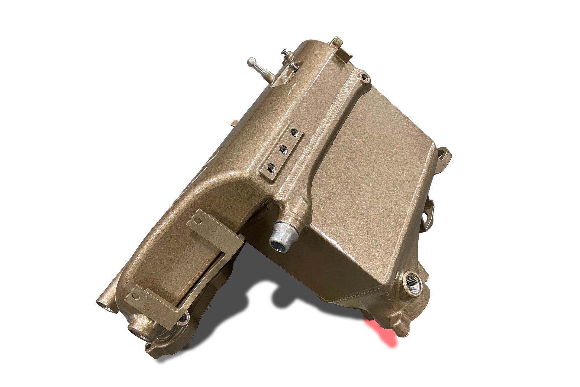 - Integrated coolant reservoir mounting locations on rear of manifold for perfect fitment